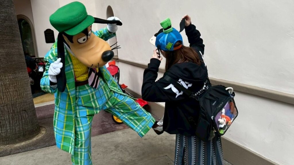 グーフィーに腕を組めって言われて、謎にマヤーと私でグーフィーの腕を組んで撮影w