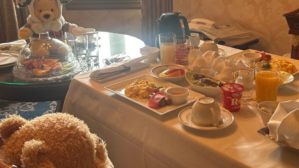 運んできてくださったワゴンの上でそのまま朝食www